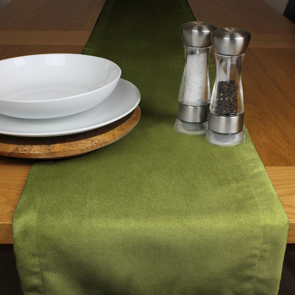 McAlister Textiles Matt Lime Green Velvet Table Runner Throws and Runners Table Runner (30cm x 200cm)